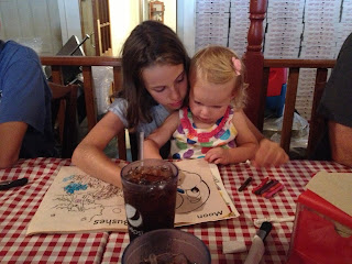 I had thought it might be hand, foot, and mouth, but with no signs other than the sores on her mouth it was diagnosed as Inpetigo :( Rose got a prescription for a cream and antibiotic. This weekend was the annual clam bake and so my sister and her family were coming up for the weekend. Since we now knew what Rose had and what precautions to take we still went out for dinner with the cousins on Friday.